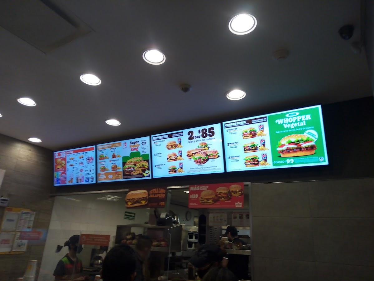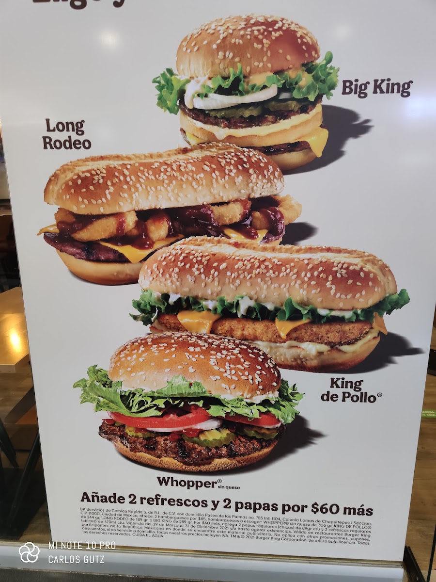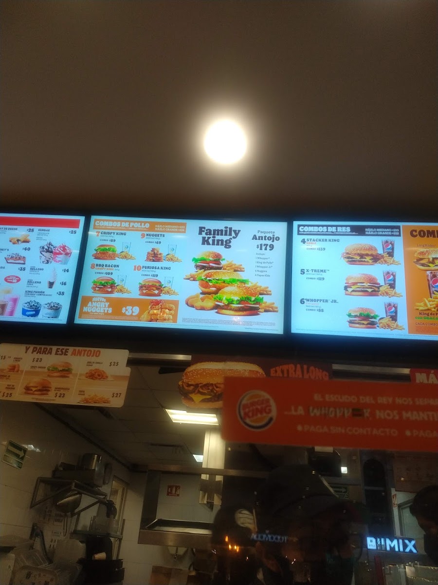 Burger King Cosmopol located in Centro Comercial Cosmopol, San Francisco Coacalco, offers a fast food experience centered on classic and family-friendly menus. Their Whopper burgers, available with or without cheese, and the King de Pollo stand out for bold flavors and satisfying portions. The Family King combos are designed for sharing, featuring a mix of Whoppers, chicken sandwiches, nuggets, fries, and refreshing soft drinks like Pepsi and Mirinda.